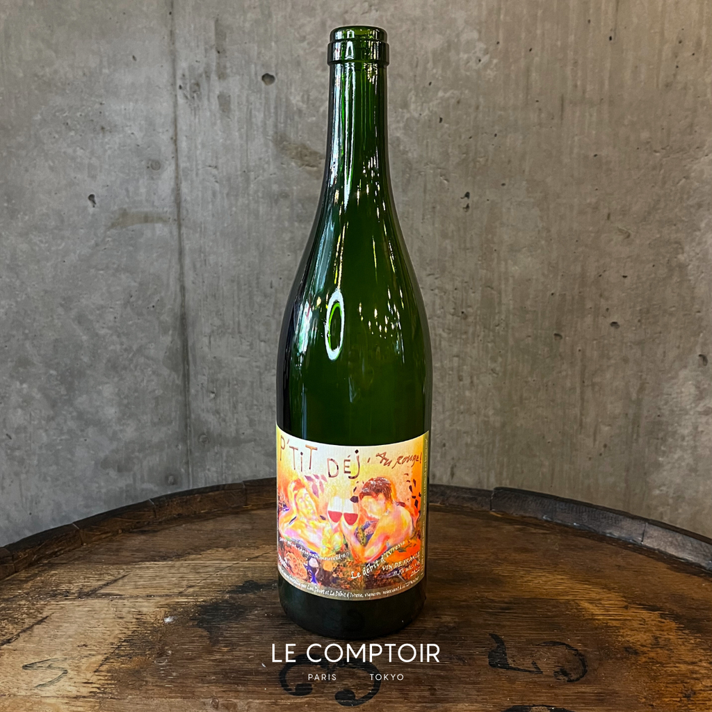 「P'tit Dej au Rouge」は、リャドネール・ペリュ40%、ムールヴェードル30%、カリニャン30%のブレンドで、除梗無しのグラップ・アンチエールのブドウをダイレクトプレス後、ステンレスタンクでマロラクティック発酵を行い、熟成させたワインです。わずかに紫がかった明るい赤色、赤い花、ザクロやレッドカラント、アセロラの甘酸っぱい果実味と朝の森のようなしっとりとした雰囲気が特長です。ほんのりとシナモンのスパイスとミネラリーな味わいが、ローズヒップティーのような余韻と合わさり、軽快な喉越しを実現しています。