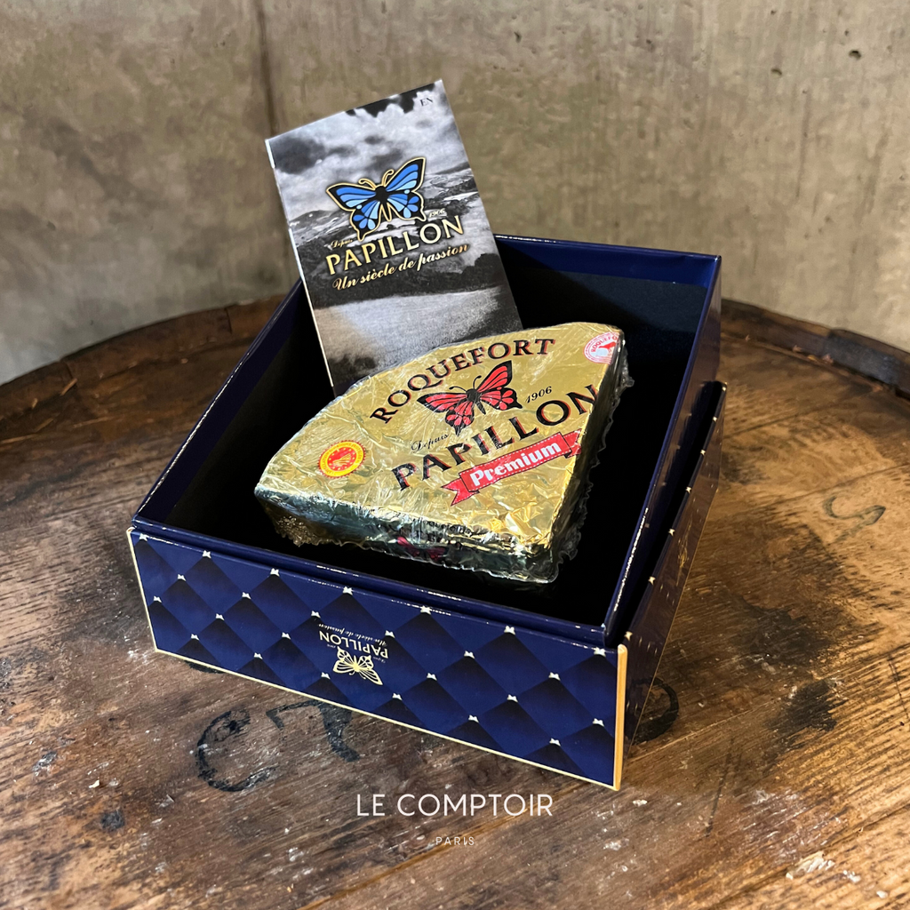 原料のミルクからこだわり、通常のロックフォールより4か月も長い、270日間という長い月日をかけて丁寧に熟成すると共に、大きく作ってロックフォールが最も美味しいとされる中心部分だけを切り出しています。濃厚なミルクの旨み、うっとりするほどまろやかな味わい、強すぎないけれど長く続く青カビの余韻の虜に。特別なギフトパッケージ入りなので、毎年コレクションする方もいるほど。日本では滅多に手に入らない特別な逸品をご賞味ください。