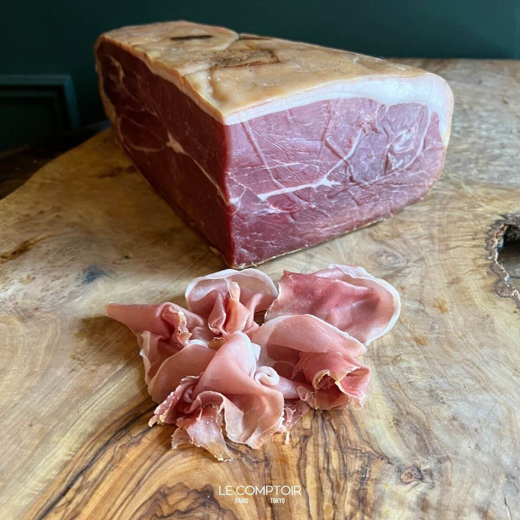 ジャンボンバイヨンヌは、フランスを代表する生ハムのひとつ。限定された地域、フランスの南西地方や、アドゥール川流域などのみで作られている特別な生ハムです。100以上の厳しい規則に基づいて作られており、味や品質も保証されています。ほどよい塩味を持ち合わせ、豚肉本来の香りと味わいを、噛みしめるごとに体感できます。